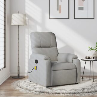 Poltrona de massagens reclinável tecido microfibra cinza-claro – PORTES GRÁTIS