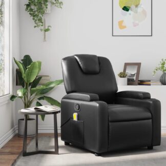 Poltrona de massagens reclinável couro artificial preto – PORTES GRÁTIS