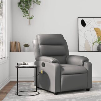 Poltrona massagens reclinável elétrica couro artif. cinzento – PORTES GRÁTIS