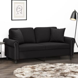 Sofá 2 lugares c/ almofadas decorativas 140 cm veludo preto – PORTES GRÁTIS