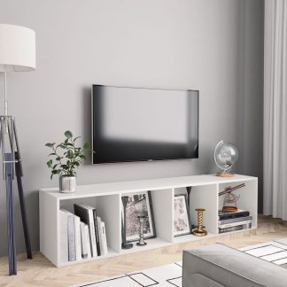 Móvel de TV 140x40x35,5 cm contraplacado branco brilhante – PORTES GRÁTIS