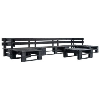 Sofás de paletes para jardim 6 pcs madeira FSC preto – PORTES GRÁTIS