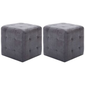 Pufe 2 pcs 30x30x30 cm camurça artificial cinzento – PORTES GRÁTIS