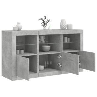 Aparador com luzes LED 142,5x37x67 cm cinzento cimento – PORTES GRÁTIS