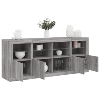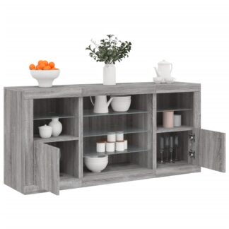 Aparador com luzes LED 142,5x37x67 cm cinzento sonoma – PORTES GRÁTIS