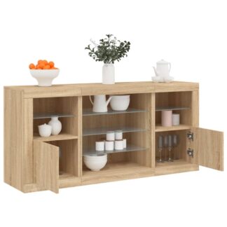 Aparador com luzes LED 142,5x37x67 cm carvalho sonoma – PORTES GRÁTIS