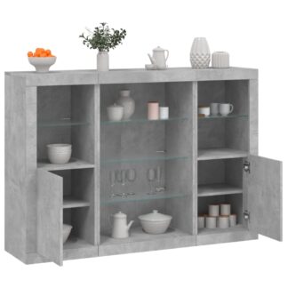 Aparadores c/ LEDs 3 pcs derivados de madeira cinzento cimento – PORTES GRÁTIS