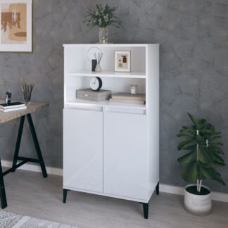 Aparador alto 60x36x110cm derivados de madeira branco brilhante – PORTES GRÁTIS