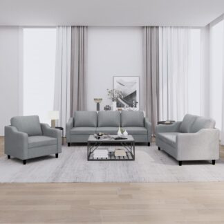3 pcs conjunto de sofás com almofadas tecido cinzento-claro – PORTES GRÁTIS