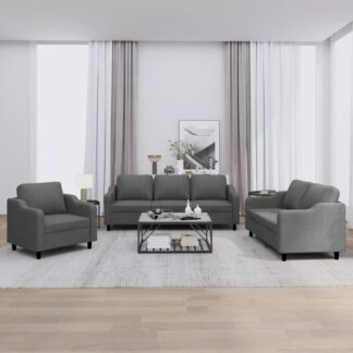 3 pcs conjunto de sofás com almofadões tecido cinzento-escuro – PORTES GRÁTIS