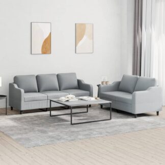 2 pcs conjunto de sofás com almofadas tecido cinzento-claro – PORTES GRÁTIS