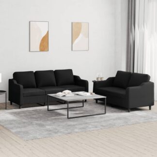 2 pcs conjunto de sofás tecido preto – PORTES GRÁTIS