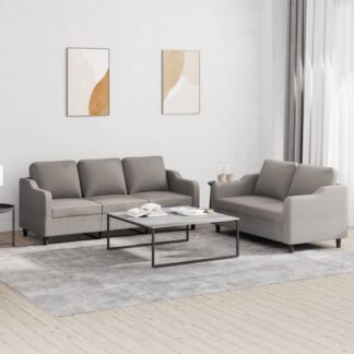 2 pcs conjunto de sofás com almofadas tecido cinza-acastanhado – PORTES GRÁTIS
