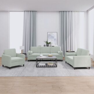 3 pcs conjunto de sofás com almofadas veludo cinzento-claro – PORTES GRÁTIS