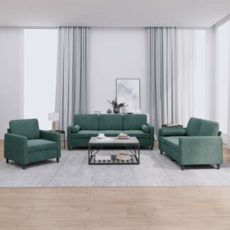 3 pcs conjunto de sofás com almofadas veludo verde-escuro – PORTES GRÁTIS