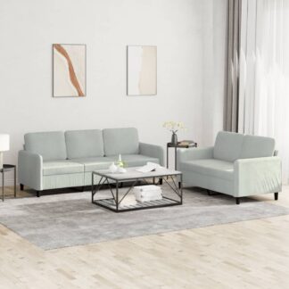 2 pcs conjunto de sofás veludo cinzento-claro – PORTES GRÁTIS