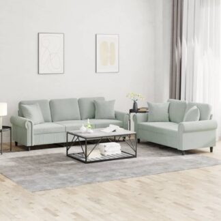 2 pcs conjunto de sofás com almofadas veludo cinzento-claro – PORTES GRÁTIS