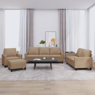 4 pcs conjunto sofás c/ almofadões couro artif. cor cappuccino – PORTES GRÁTIS
