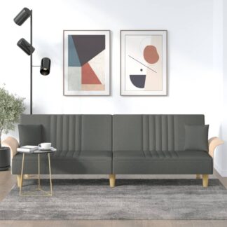 Sofá-cama 2 lugares c/ almofadas/apoio pés tecido cinza-escuro – PORTES GRÁTIS