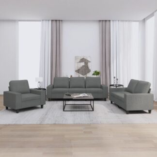 3 pcs conjunto de sofás tecido cinzento-escuro – PORTES GRÁTIS