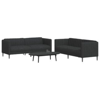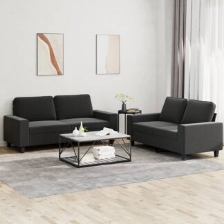 2 pcs conjunto de sofás tecido preto – PORTES GRÁTIS
