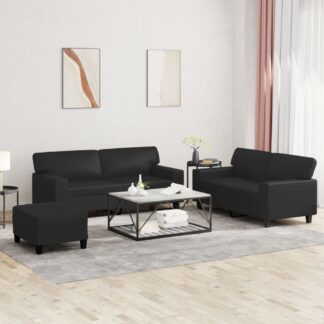 3 pcs conjunto de sofás couro artificial preto – PORTES GRÁTIS