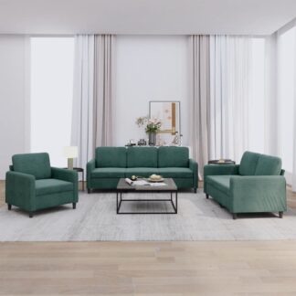 3 pcs conjunto de sofás veludo verde-escuro – PORTES GRÁTIS