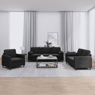 3 pcs conjunto de sofás com almofadas veludo preto – PORTES GRÁTIS