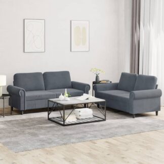 2 pcs conjunto de sofás com almofadas veludo cinzento-escuro – PORTES GRÁTIS