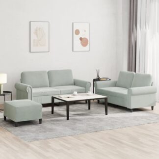 3 pcs conjunto de sofás veludo cinzento-claro – PORTES GRÁTIS