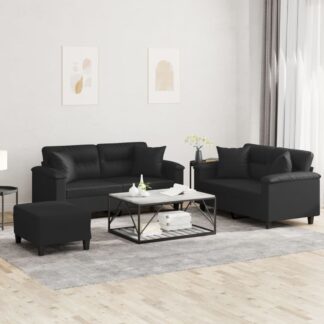 3 pcs conjunto de sofás com almofadas couro artificial preto – PORTES GRÁTIS