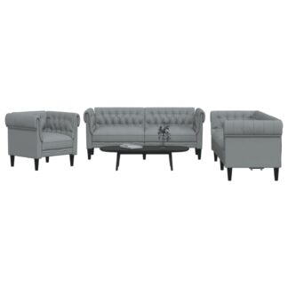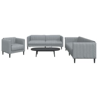 3 pcs conjunto de sofás tecido cinzento-claro – PORTES GRÁTIS