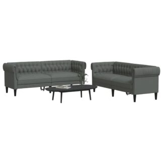 2 pcs conjunto de sofás tecido cinzento-escuro – PORTES GRÁTIS