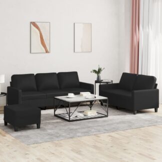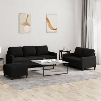 3 pcs conjunto de sofás com almofadões tecido preto – PORTES GRÁTIS