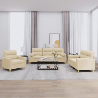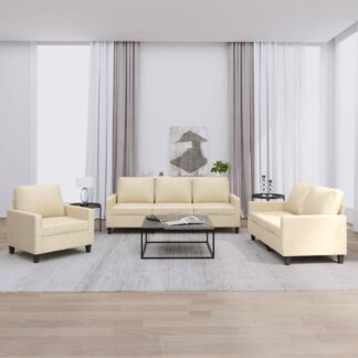 3 pcs conjunto de sofás com almofadas tecido cor creme – PORTES GRÁTIS