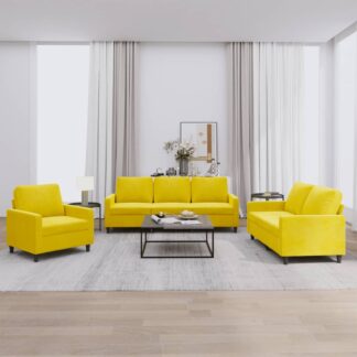 3 pcs conjunto de sofás com almofadões veludo amarelo – PORTES GRÁTIS