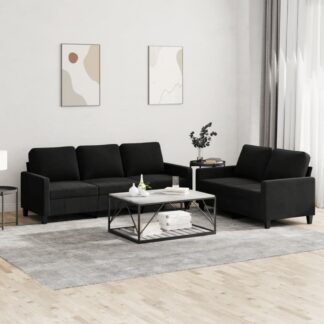 2 pcs conjunto de sofás com almofadões veludo preto – PORTES GRÁTIS