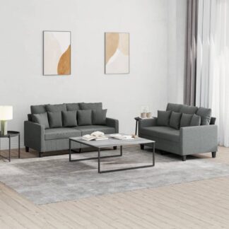 2 pcs conjunto de sofás com almofadas tecido cinzento-escuro – PORTES GRÁTIS