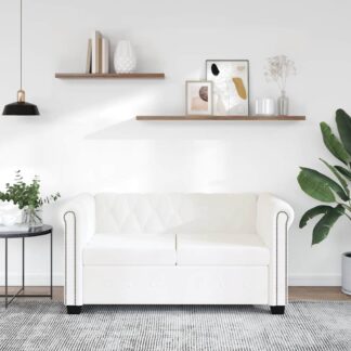 Sofá Chesterfield de 2 lugares em couro artificial branco – PORTES GRÁTIS
