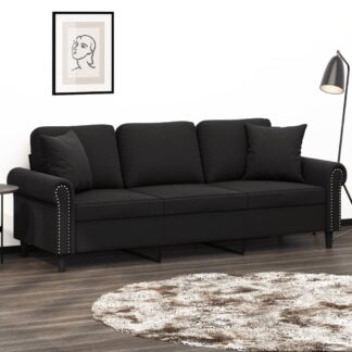 Sofá 3 lugares c/ almofadas decorativas 180 cm veludo preto – PORTES GRÁTIS