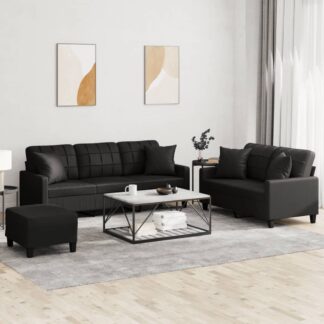 3 pcs conjunto de sofás com almofadas couro artificial preto – PORTES GRÁTIS