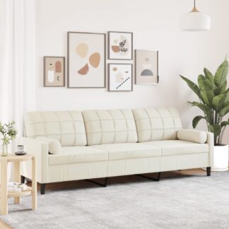 Sofá 3 lugares c/ almofadas decorativas 180 cm veludo creme – PORTES GRÁTIS