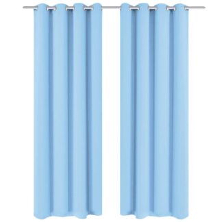 Cortinas opacas 2 pcs Azul claro 175 x 140 cm Poliéster – PORTES GRÁTIS