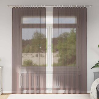 Cortinas de voile com bolsos para varão 2 pcs castanho – PORTES GRÁTIS
