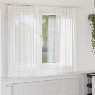 Cortinas de voile com bolsos para varão 2 pcs branco – PORTES GRÁTIS