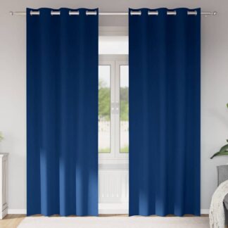 Cortinas com cortinas 2 pcs Azul escuro 260 x 140 cm Poliéster – PORTES GRÁTIS