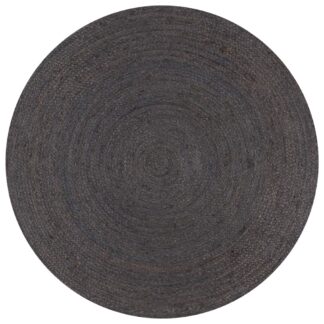 Tapete Artesanal Em Juta Redondo 150 Cm Cinzento Escuro – PORTES GRÁTIS