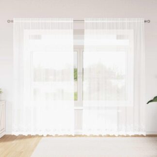 Cortinas com cortinas Floral Branco 500 x 80 cm Poliéster – PORTES GRÁTIS