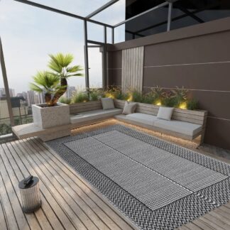Tapete de exterior 120×180 cm PP cinzento – PORTES GRÁTIS