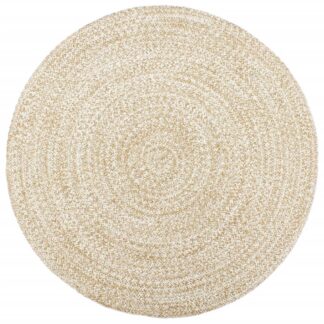 Tapete artesanal em juta 240 cm branco e castanho – PORTES GRÁTIS